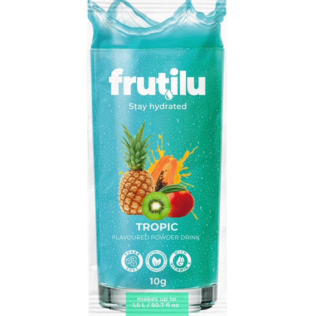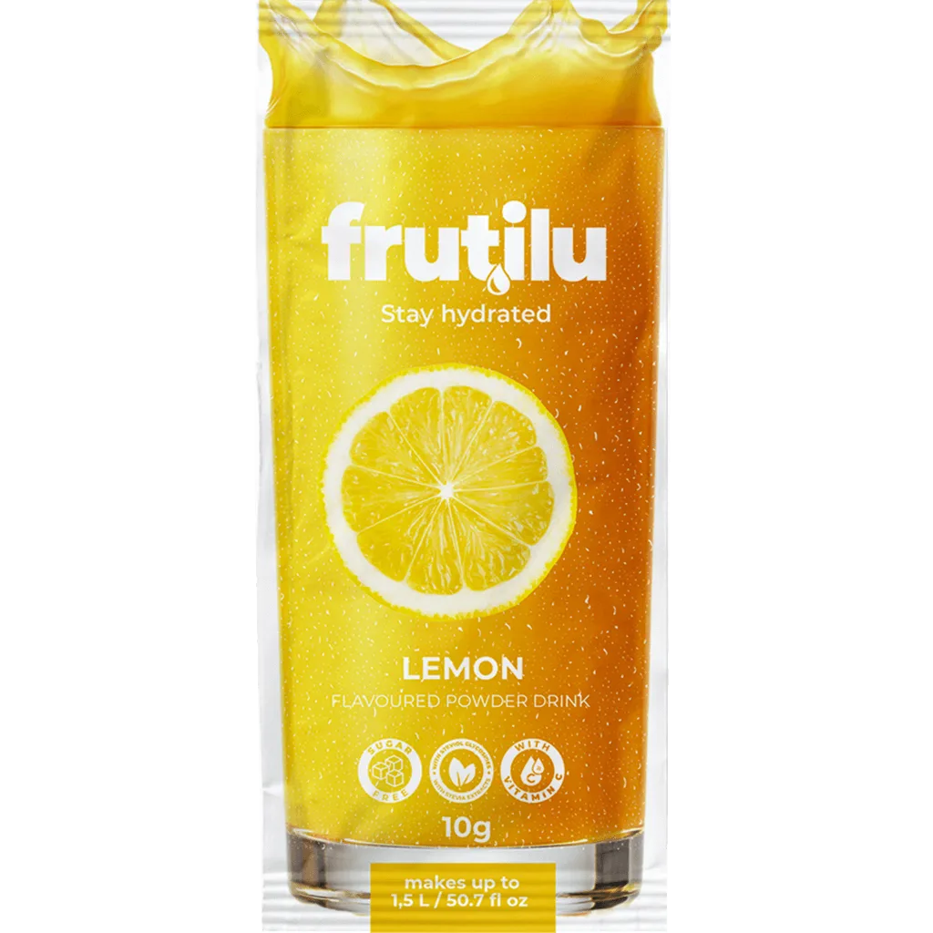 Frutilu, bevanda istantanea aromatizzata e senza zucchero con aggiunta di vitamina C.